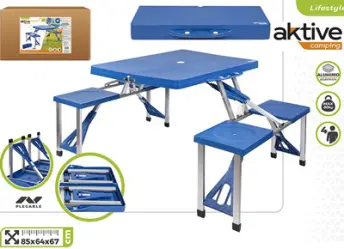 MESA CAMPING CON ASIENTOS PLEGABLE 85x64x67cm 52892 AKTIVE