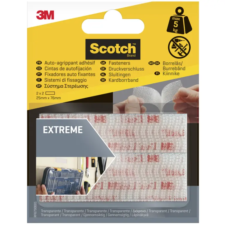 AUTOCIERRE VELCRO REPOSICIONABLE TRANSPARENTE 4 TIRAS 25mm x7,5cm RF67300 3M