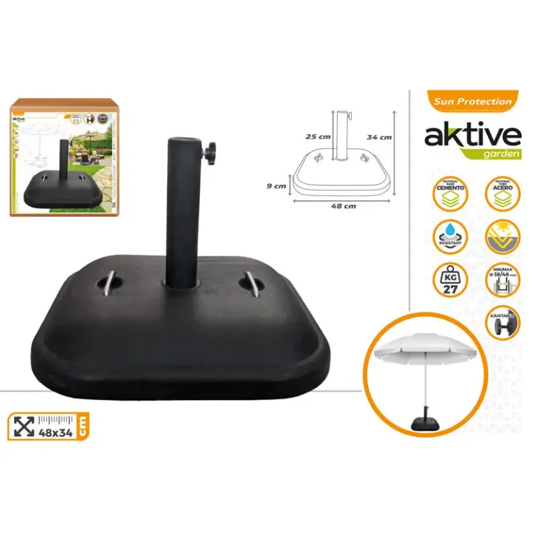 BASE PARASOL SOMBRILLA CEMENTO 48x48cm 28kg 61141 AKTIVE