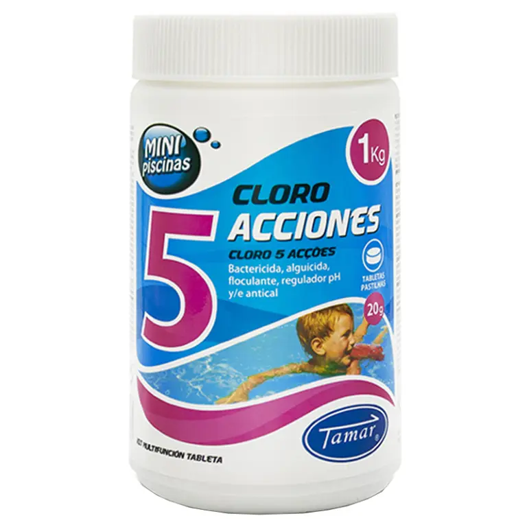 BOTE MINI 1kg CLORO 5 EFECTOS TABLETA 20gr TAMAR
