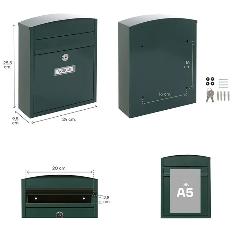 BUZON COMPACT VERDE 24x8x29cm E5733 ARREGUI