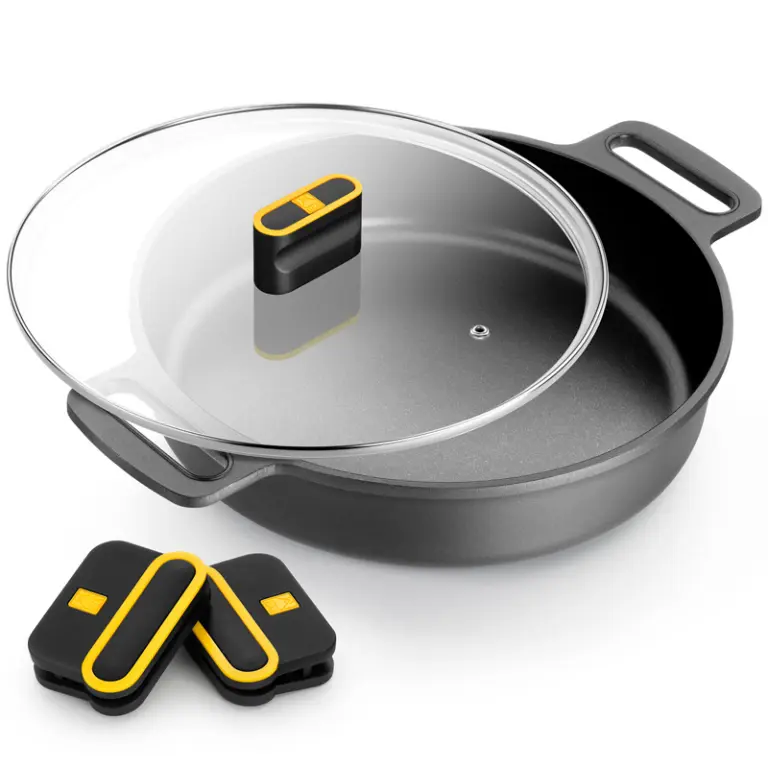Cuerpo apto para horno hasta 220 C (usar en el horno sin la tapa de cristal y las asas de silicona).