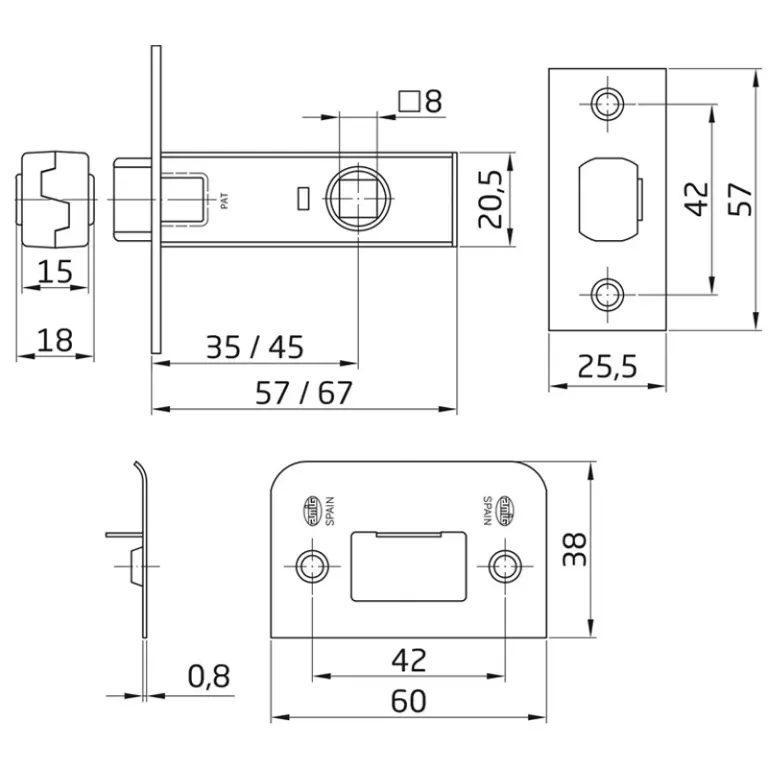 CAJA 20 PICAPORTE LATONADO 35mm MOD.6 367 AMIG