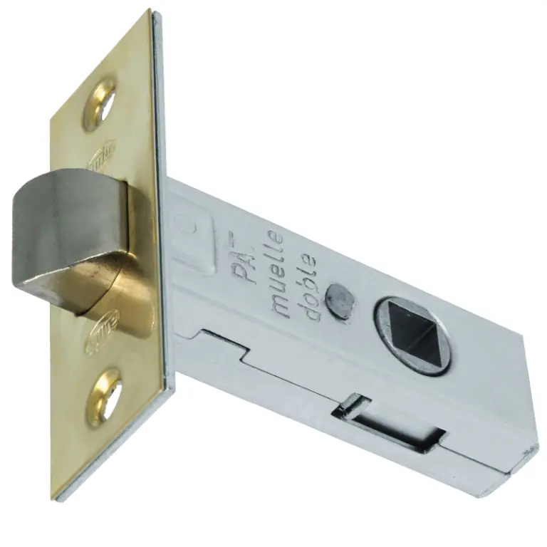 Picaporte de embutir con doble muelle con el frente y el soporte en canto cuadrado.