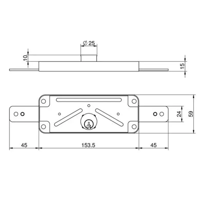 Cerradura de sobreponer indicada para puertas metálicas de persiana o basculantes
