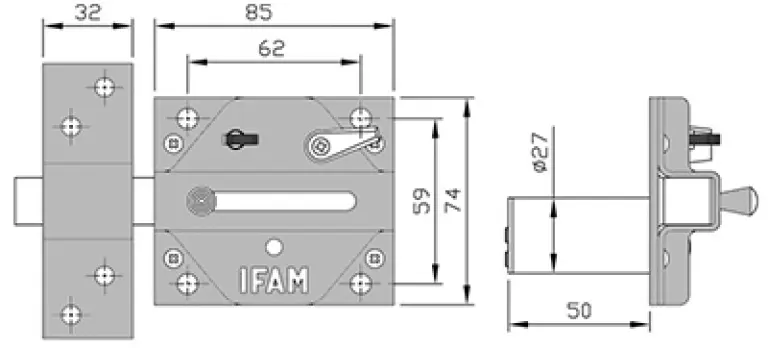 CERROJO SEGURIDAD CS88L M50 LATONADO B/REDONDO 85mm IFAM
