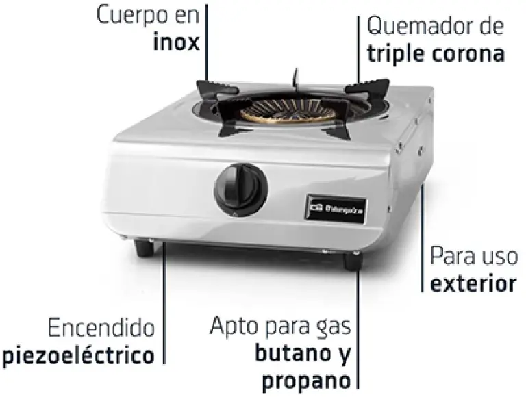 Combustible: Gas butano o gas propano.