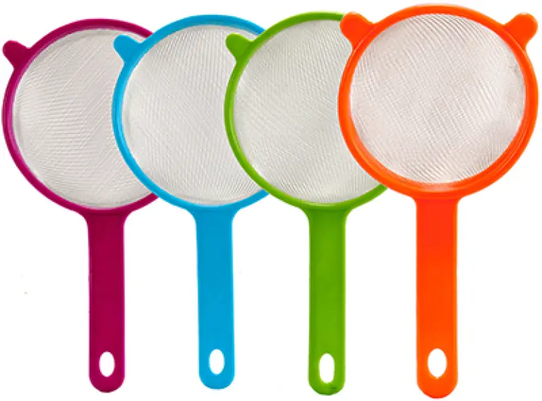 Fabricado en plástico de color y malla de aluminio.