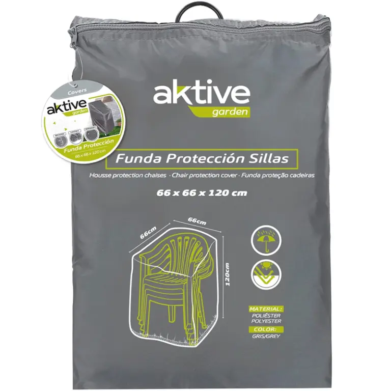 FUNDA SILLAS APILADAS POLIESTER 120x66cm 61504 AKTIVE 0002.0990 UdxCaja: 6 8412842615045 Avisame Etiquetas