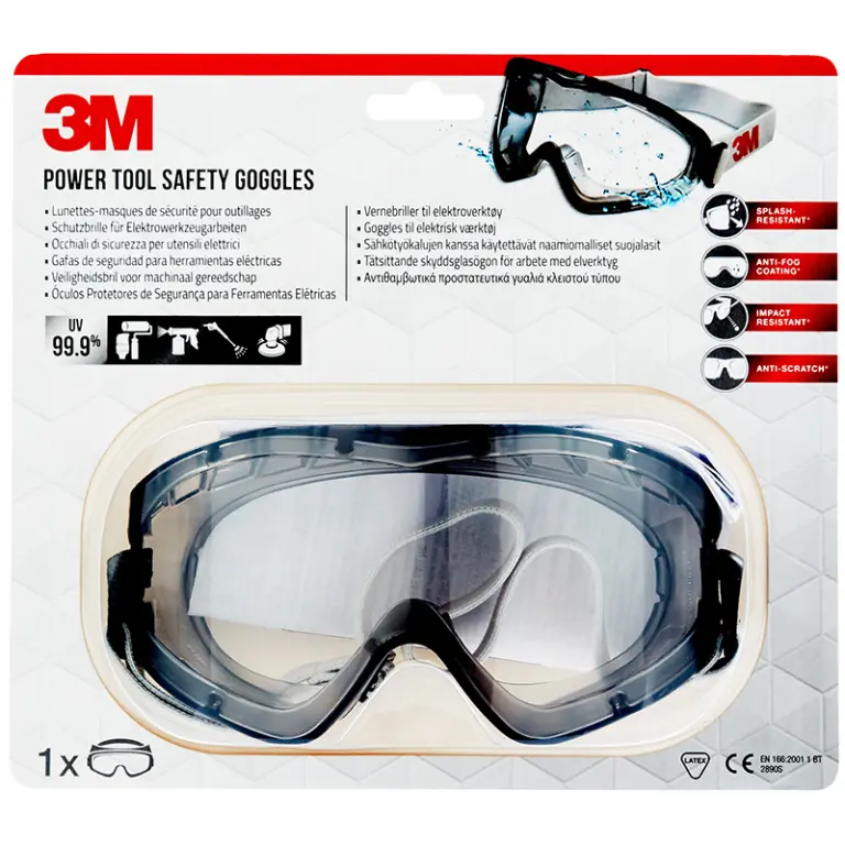 Gafas de ajuste ceñido con un amplio campo de visión Resistentes a salpicaduras para protegerse al aplicar pintura pulverizada y usar lijadoras orbitales Excelente visibilidad gracias a su recubrimiento antiempañamiento Resistentes a impactos Lentes antirrayaduras Fáciles de ajustar gracias a su tira elástica de nailon Probadas y aprobadas conforme a las normas europeas: marca CE (EN 166:2001 1 BT) Protege la visión con una resistencia del 99,9 % a los rayos UV