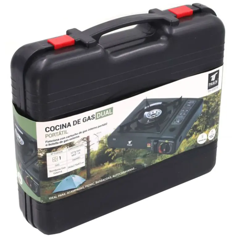 HORNILLO COCINA PORTATIL DUAL CARTUCHO VALVULA Y BUTANO TH-GS019 THULOS