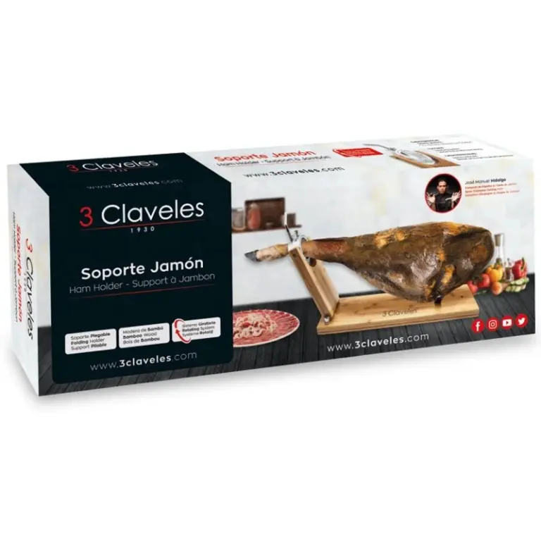JAMONERO PLEGABLE Y GIRATORIO MADERA 01736 3 CLAVELES