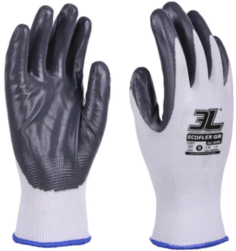 Guante sin costuras realizado en poliéster con recubrimiento de nitrilo en la palma