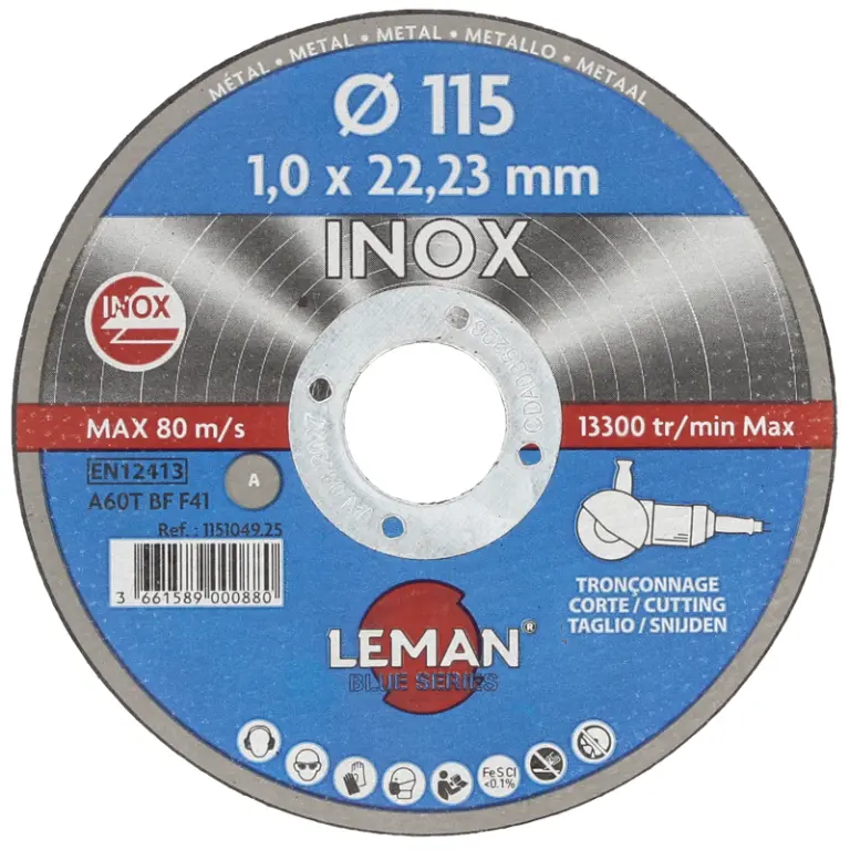 PAQ. 25 DISCOS CORTE INOX 115x1mm 1151049.25 LEMAN