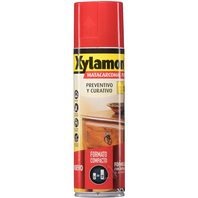 También disponible en envases para ser aplicado por inyección para erradicar la carcoma pequeña de los muebles.