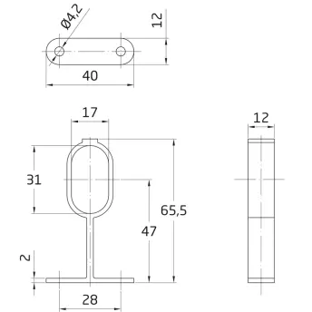 CAJA 25 SOPORTE LATERAL TUBO OVAL 25x15 CROMO A-402-12