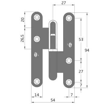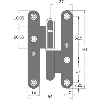 CAJA 25 BISAGRA SOBREPONER OCULTA KRIPLI 105x44mm ZINC 10092