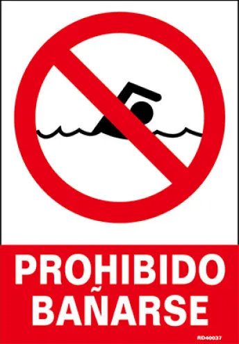 SEÑAL PROHIBIDO BAÑARSE 210x297mm RD40037