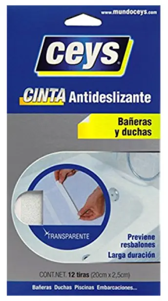 BLISTER 12 TIRAS ANTIDESLIZANTE BAÑERA 20x2.5cm TRANSPARENTE CEYS