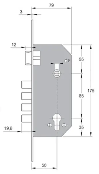 CERRADURA SEGURIDAD LATONADA W900B.50CHL IFAM